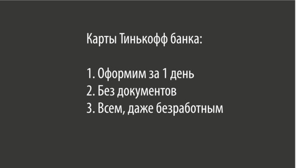 По сути, ничем. Для того, чтобы это стало не просто «Бла-бла-бла», надо переформулировать для конкретной целевой аудитории, сделать так, чтобы человек это почувствовал на себе, то есть персонифицировать. Вместо «Быстро» – «Оформим за 1 день», вместо «Просто» – «Без документов», и вместо «Доступно» – «Даже безработным». Это более конкретная информация, доступная и персонифицированная.