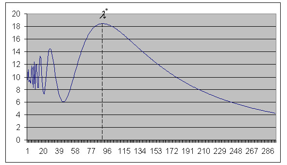 Пирамида Менкаура: м, a=b=108.4 м. Результат математического моделирования представлен в виде графиков зависимостей D () для каждой пирамиды, где символом обозначено значение оптимальной длины волны, при которой обеспечивается максимальное значение функции (рис.73).