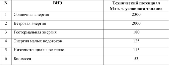 Табл. 3. Традиционные ресурсы возобновляемых источников энергии (ВИЭ) в России по данным Института теплофизики СО РАН [2,3,4]