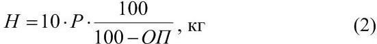 ОП – сумма отходов и потерь компонента, определяется опытом, %.