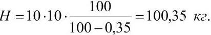 Количество отходов и потерь не является постоянной величиной для одних и тех же видов сырья на различных предприятиях. Количество потерь и отходов зависит от технического состояния оборудования и принятой технологической схемы обработки сырья и может колебаться от показателей стандарта. Характер отходов и потерь различен в каждой группе пищевых концентратов. Так при производстве продуктов из ячменя и овса преобладают отходы, а при обжаривании натурального кофе – безвозвратные потери в виде угара. Поэтому при производстве пищевых концентратов нормы расхода сырья, Н, кг, рассчитывают исходя из рецептурного набора изделия и практически установленных норм потерь и отходов на каждый компонент, входящий в изделие. Для расчета применяют формулу (2):