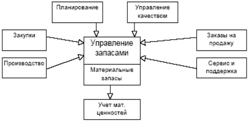 При решении задач управления запасами – производится обработка и корректировка всей информации о приходе, движении и расходе сырья и материалов, промежуточной продукции и готовых изделий; учет запасов по складским ячейкам, выбор индивидуальных стратегий контроля, пополнения и списания запасов по каждой позиции номенклатуры сырья и материалов, и т.д. Учитывается нормативная и текущая фактическая стоимость запасов, а также отслеживается прохождение отдельных партий запасов и серий изготавливаемой продукции.