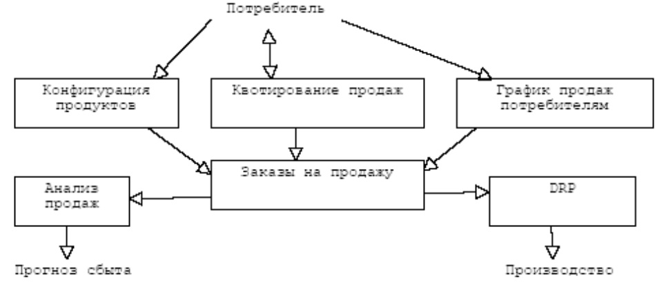 Сегодня модель MRP/ERP включает в себя следующие подсистемы, которые часто называют также блоками или сериями: