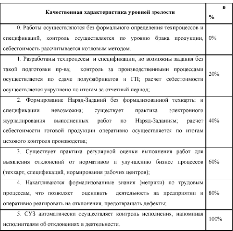 Таким образом, достижение 40 % по всем шести Ключевым процессам будет означать , что предприятие вышло на II-й уровень BPI. Если хотя бы у одного Ключевого Процесса не достигнута оценка 40 %, то считается, что предприятие находится на первом уровне BPI. Далее мы будем рассматривать использования практик, предложенных компанией QAD на базе ERP-системы MFG/PRO, для перехода предприятия с уровня I на уровень II.