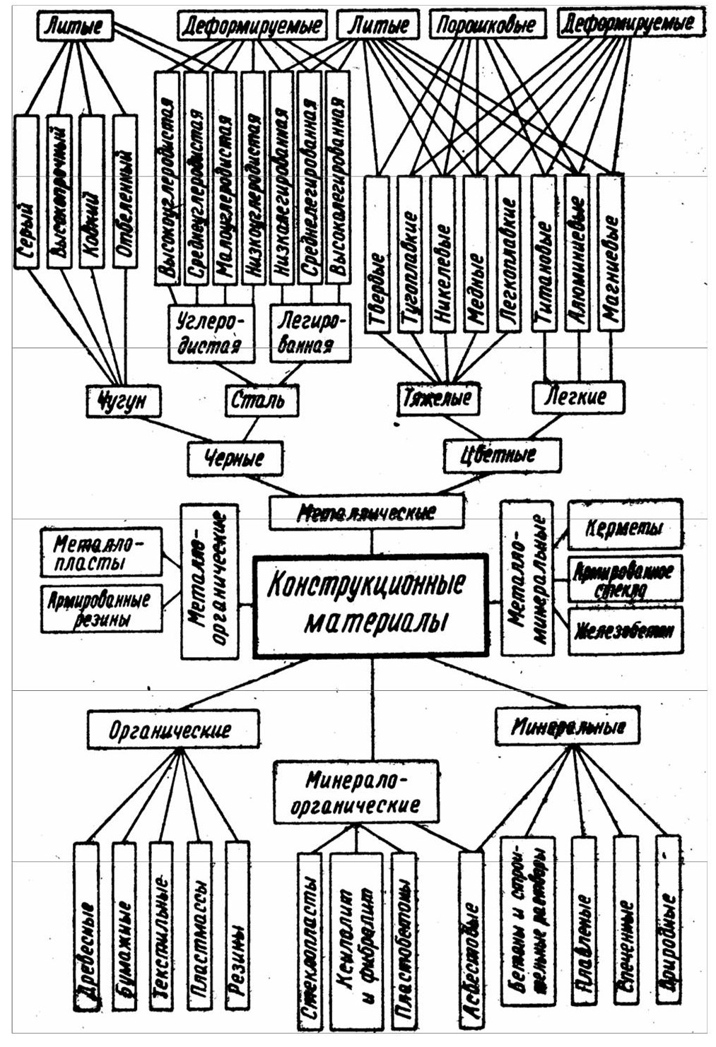 Все конструкционные материалы, в основном, делят на две группы: металлические и неметаллические и их группы приведены на рисунке 1.