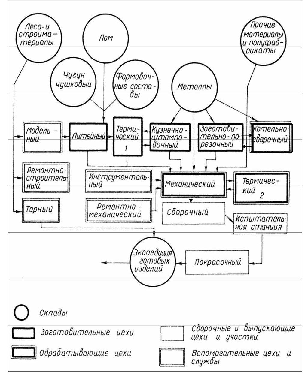 Рисунок 2 – Состав и взаимосвязь цехов машиностроительного предприятия