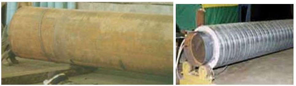 Сварные трубы изготавливают с толщиной стенкой от 0,5 до 20 мм и диаметром более 2400 мм с хорошо выполненным прямым или винтовым швом (рисунок 6) и высоким качеством поверхности.