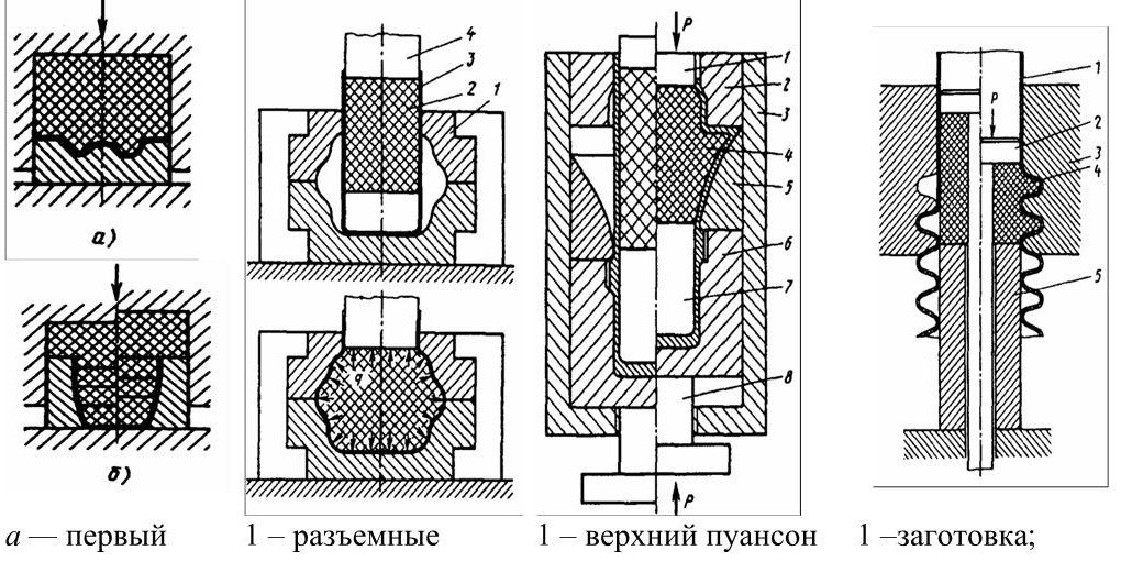 Рисунок 22 – Схемы штампов для формовки резиной пространственных деталей