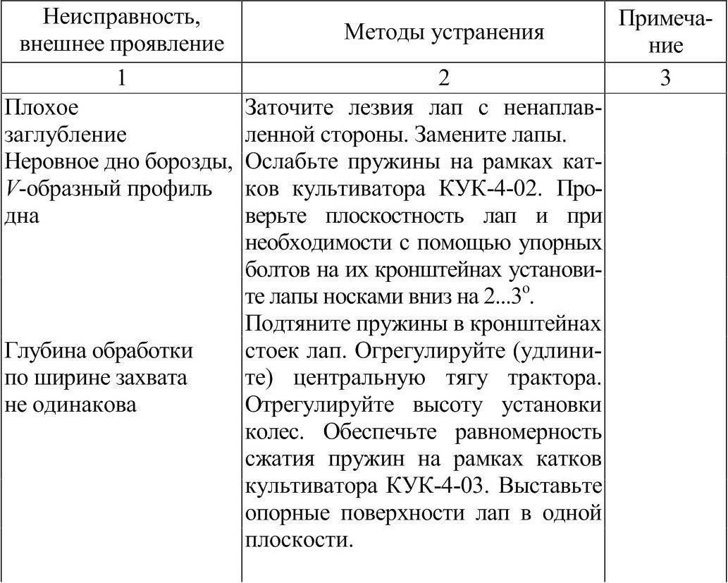 10 .Возможные неисправности работы культиватора КУК-4 и их влияние на качество работы.