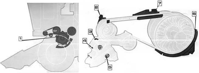 Механизм включения молотилки (2, 3,4,5, 6, 7) (рисунок 2.36) обеспечивает передачу крутящего момента от коленчатого вала двигателя к главному контрприводному валу молотилки, от которого приводится вал барабана молотильного устройства 1.
