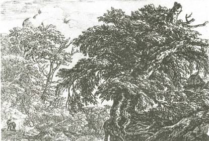 32. Я. ВАН РЕЙСДАЛЬ. Пейзаж с двумя крестьянами и собакой
