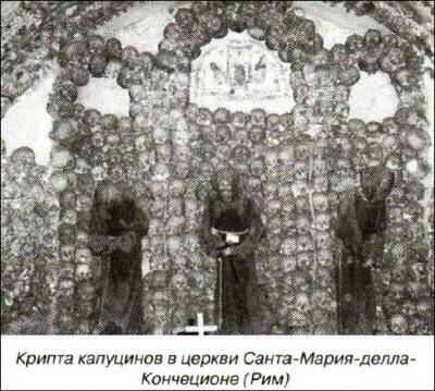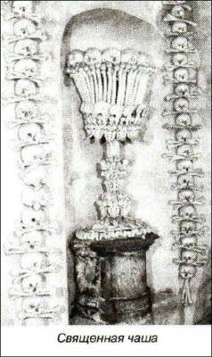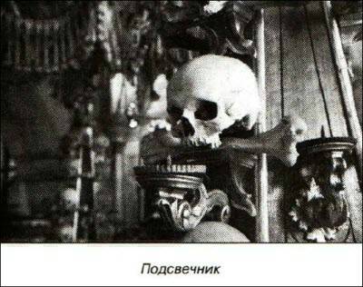 …Я был в оссуарии впервые в жизни и очень боялся. Кости монахов в течение многих столетий выкапывались из земли и укладывались в нишах. При этом скелеты разбирались, так что в одной нише были мелкие кости, в других — черепа, уложенные аккуратной пирамидкой, чтоб не покатились. Это было жуткое зрелище, особенно в неровном свете моего прыгающего фонаря. В следующей нише лежали одни руки. Куча рук, навеки сцепившихся высохшими пальцами.
