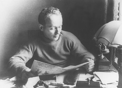 Шолохов за чтением газет в рабочем кабинете. 1930-е гг.