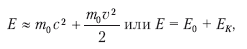 где E = m0c2– энергия покоя частицы с массой покоя m0,а EK – кинетическая энергия движущейся частицы.