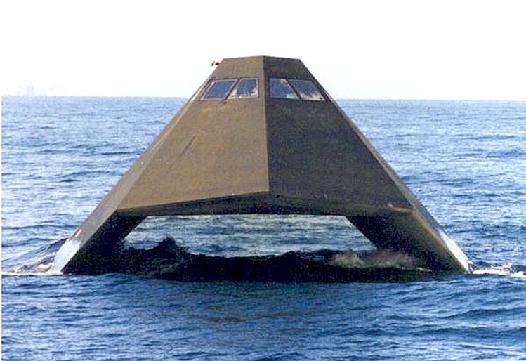 Я вернулся в Бербанк с обновлённым чувством пренебрежения к флоту, но один из наших инженеров как раз приехал из деловой поездки в Пёрл Харбор и рассказал мне, что увидел там экспериментальный катамаран, который ВМС построили для проверки концепции по собственной инициативе. Это был прототип SWATH (двухкорпусное судно с малой площадью сечения по ватерлинии), который должен был подтвердить свою удивительную устойчивость при сильных волнах и должен был быть значительно быстрее обычного корабля. Мне показалось, что катамаран SWATH имел реальную перспективу стать малозаметным кораблём. В своей следующей поездке в Вашингтон по поводу конструкции малозаметного самолёта я встретился с замминистра обороны Биллом Перри, который был главным по теме малозаметности в администрации Картера. Я рассказал ему об идее малозаметного корабля. Катамаран идеально подходил для теста применения технологии малозаметности к кораблю. Также мы хотели выяснить, как морская вода будет взаимодействовать с радар-поглощающим ферритовым покрытием. Доктор Перри принял идею и передал Управлению перспективных исследовательских проектов (DARPA) поручение заключить с нами контракт на проведение исследований.