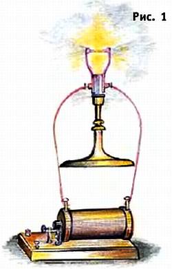 В 1879 году, понаблюдав за поведением раскаленного каолина, Яблочков создал лампу накаливания, состоявшую из фарфорового стержня, накаляемого электрическим током (рис. 1).