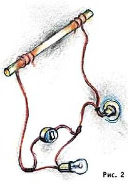 Соберите цепь из лампы и выключателей, как показано на рисунке 2.
