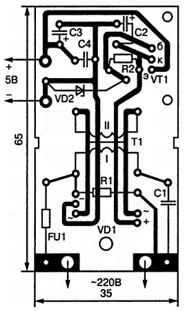Рис. 3. Печатная плата сетевого миниатюрного блока питания