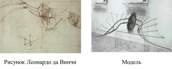Рисунок Леонардо планера и его модель (рис. 1.6).