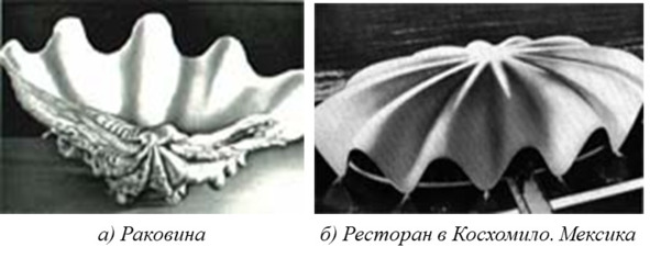 По аналогии с формой раковины мексиканский архитектор Ф. Кандела спроектировал ресторан в Косхомило в Мексике (рис. 1.44).
