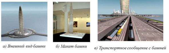 Башня не окажется эдаким гигантским металлическим «деревом» посреди привычных железобетонных зданий. Мы вообще считаем, что наилучшее место для нее – на берегу моря или на искусственно намытом острове. Потому что по окружности ее должен «кольцевать» целый комплекс строений диаметром с километр с зонами технологического, торгового и социального назначения, обеспечивающими нормальную жизнь человека в башне. Там же место и транспортным узлам, соединяющим между собой шоссейные, железную и подвесную дороги, которые свяжут наш город с традиционным городом, аэро- и морским портами».