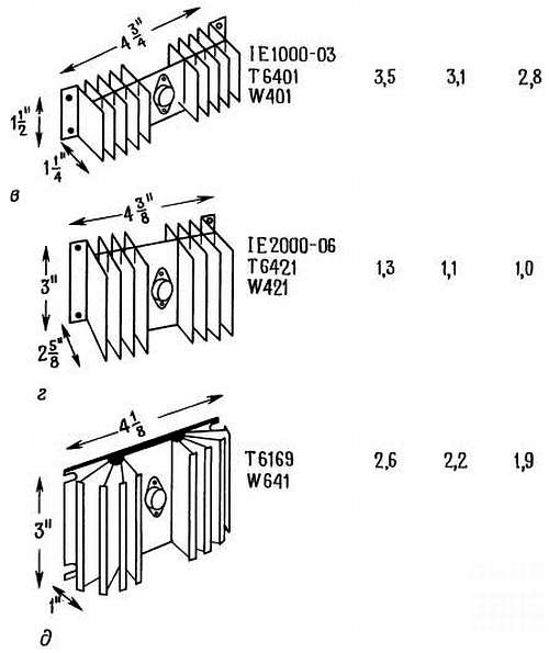 Рис. 6.6. Радиаторы для мощных транзисторов.
