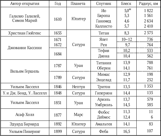 Но и до появления фотопластинки большие рефлекторы уверенно демонстрировали свое главное преимущество – высокую проницающую способность, то есть позволяли замечать тусклые объекты. Вильям Гершель с помощью своего любимого «Большого 20-футового» диаметром 18 дюймов в 1787 г. открыл спутники Урана – Титанию и Оберон, имеющие блеск около 14m. До этого астрономы замечали спутники с блеском не слабее 11m, и вдруг – скачок сразу на три звездные величины (табл. 3.1). Результат Гершеля немного улучшил другой любитель астрономии – английский пивовар Уильям Ласселл (1799–1880), построивший близ Ливерпуля рефлектор диаметром 24 дюйма. И это было вполне закономерно: используя зеркало почти вдвое большей площади, он и продвинулся к вдвое более тусклым объектам. При этом Ласселл повторил рекорды Галилея, Кассини и Гершеля – открыл 4 спутника (он обнаружил Гиперион независимо от американских астрономов отца и сына Бондов). Любопытно, что вслед за Гершелем и лордом Россом Ласселл в 1855 г. тоже построил огромный 48-дюймовый рефлектор. Понимая, что Англия – не лучшее место для астрономических наблюдений, Ласселл установил свой гигантский инструмент в прекрасном районе – на острове Мальта. Однако, как и его предшественники, он не обнаружил новых спутников. Для этого требовался новый технологический рывок.