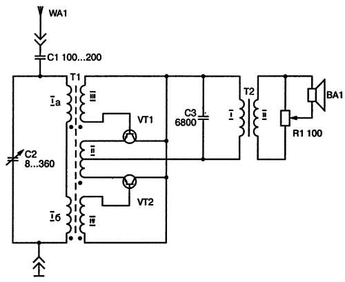 Рис. 3. Принципиальная схема громкоговорящего приемника