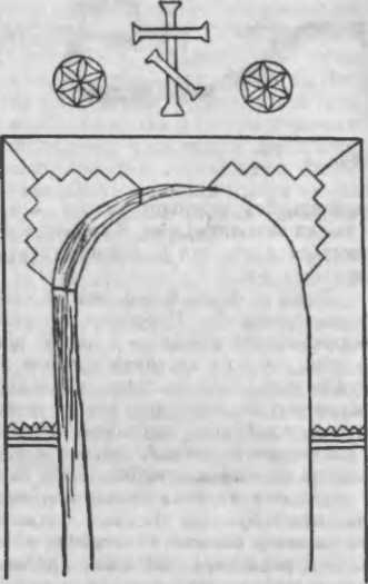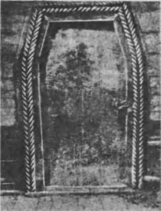 ЦІЙ формі дверей, явна річ, відповідають і одвірки, зрубані зовсім особливим способом, з бічними вставками, що дають дверям зовсім закруглений вигляд (мал. II).