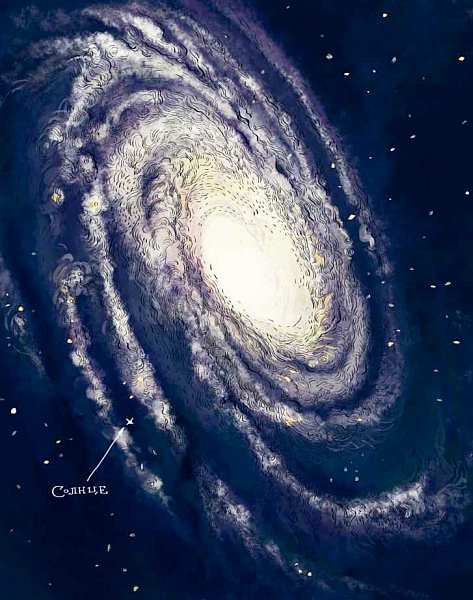 — Галактика — это огромное скопление из сотен миллиардов звёзд. Наше Солнце вместе со всеми планетами входит в галактику Млечный Путь. Если можно было бы посмотреть на Млечный Путь сверху, мы бы увидели огромную спираль.