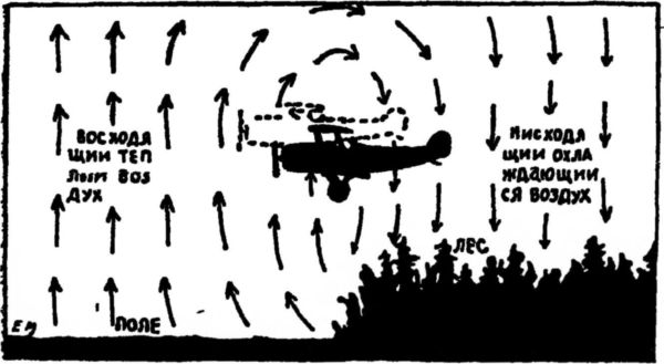 Несколько неприятнее для самолета явление, которое называется рему. Это — тоже движение воздуха, т. е. по существу тот же ветер, но движение воздуха происходит в данном случае не горизонтально, как при обычном ветре, а вертикально, то есть снизу вверх и обратно. Это явление бывает только в теплые времена года, особенно летом. Как оно происходит и как влияет на полет самолета?