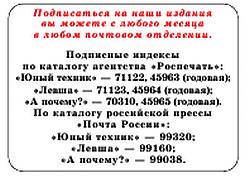 — Любители механики по нашим рекомендациям построят действующую модель судна на воздушной подушке, а электронщики соберут схему следящего устройства для микроробота, движущегося заданным курсом.
