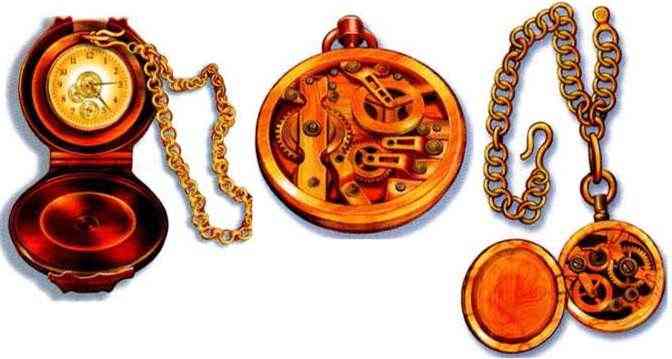 В часах Семена Бронникова части часового механизма, футляр и цепочка сделаны из дерева.