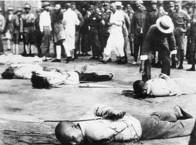 Во-вторых, японцы с детства воспитывались в презрении к китайцам. Предметом гордости любого ребенка была «наша славная победа» — разгром китайской армии в войне 1894-1895 года, захват Тайваня и полуострова Ляодун. Многие японские солдаты открыто относились к китайцам, как к людям второго сорта. Убить китайца для них значило не больше, чем «раздавить гадину».