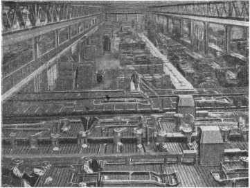 На изготовление одной рамы затрачивается полтора часа. За это время над рамой и ее частями производится около шестисот операций. В три смены при двухстах рабочих завод изготовляет 12 000 рам. При ручной работе для изготовления такого же количества рам в течение суток потребовалось бы 18 000 рабочих. На смитовском заводе работа людей почти целиком сводится к наблюдению за машинами. Обширные помещения завода, в которых кипит непрерывная работа, поражают безлюдьем. Нужно внимательно оглядеться вокруг, чтобы обнаружить где-либо в стороне на мостике живого человека.