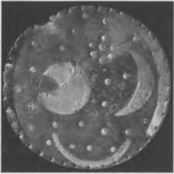Рис. 1.1. Неолитическая «карта» звездного неба, включающая изображение Плеяд, изготовленная из бронзы с золотыми накладками. Найдена в Германии, близ г. Небра, в 1999 г.
