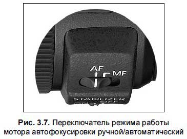 Если у вас бюджетный объектив, во время фокусировки не пытайтесь крутить кольцо фокусировки, обычно у вас на объективе стоит линейный привод, не позволяющий подстраивать фокус одновременно с работой системы автофокуса, для этого нужно перейти в ручной режим фокусировки. Изменять фокус одновременно с работой системы автофокуса можно лишь на объективах с волновым мотором, например Canon ultrasonic USM (рис. 3.7).