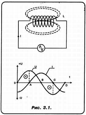 «А»: В момент А изменение напряжения во времени (т. е. ΔU/Δt) минимально. Поэтому ток равен НУЛЮ! Затем напряжение на участке АВ падает до НУЛЯ. Но при этом отношение ΔU/Δt — ВОЗРАСТАЕТ! Поэтому генерируемый электромагнитным полем индуктивности L ток I имеет такое направление, чтобы не дать напряжению на выводах индуктивности L упасть до нуля! То есть в этом случае в точке В ток максимален, а его полярность положительна!