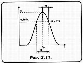 Так вот, численно, количество полных циклов заряд — разряд до, практически, полного затухания РАВНО ДОБРОТНОСТИ! Т. е. добротность Q = n, где n — количество полных циклов. А теперь от амплитудно-временных характеристик перейдем к АЧХ (рис. 3.11).