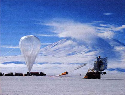 23.2 BOOMERanG перед запуском. На заднем плане — вулкан Эребус («Википедия»)