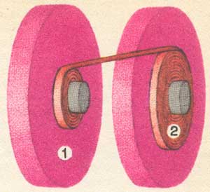 Чтобы понять суть импульсного управления, можно взять любой электромотор, хотя бы домашний вентилятор, и включать его в сеть через каждую секунду с такой же продолжительностью включения. Лопасти вентилятора будут вращаться почти равномерно, однако с меньшей скоростью, чем если бы прибор был включен постоянно. Попробуем увеличивать паузы между включениями – вентилятор закрутится медленнее, станем их уменьшать – быстрее. При импульсном управлении импульсы тока подаются автоматически. Такое управление тоже обеспечивает 75-процентный отбор энергии от супермаховика.
