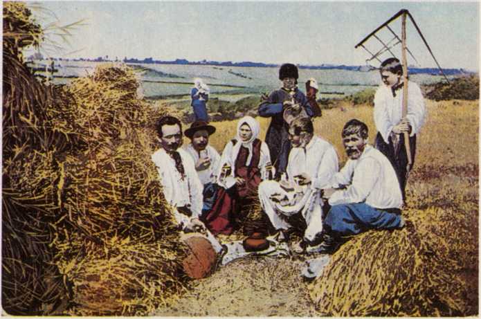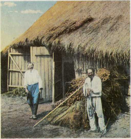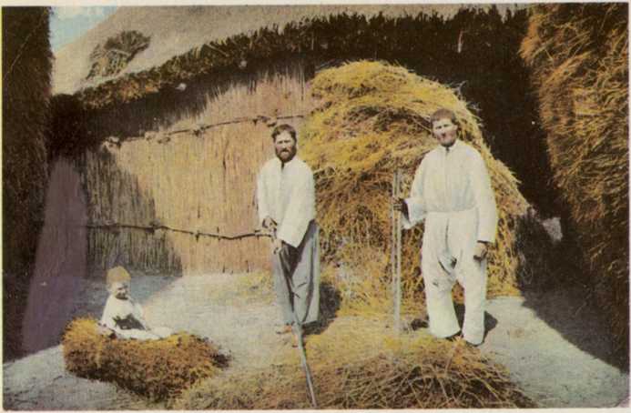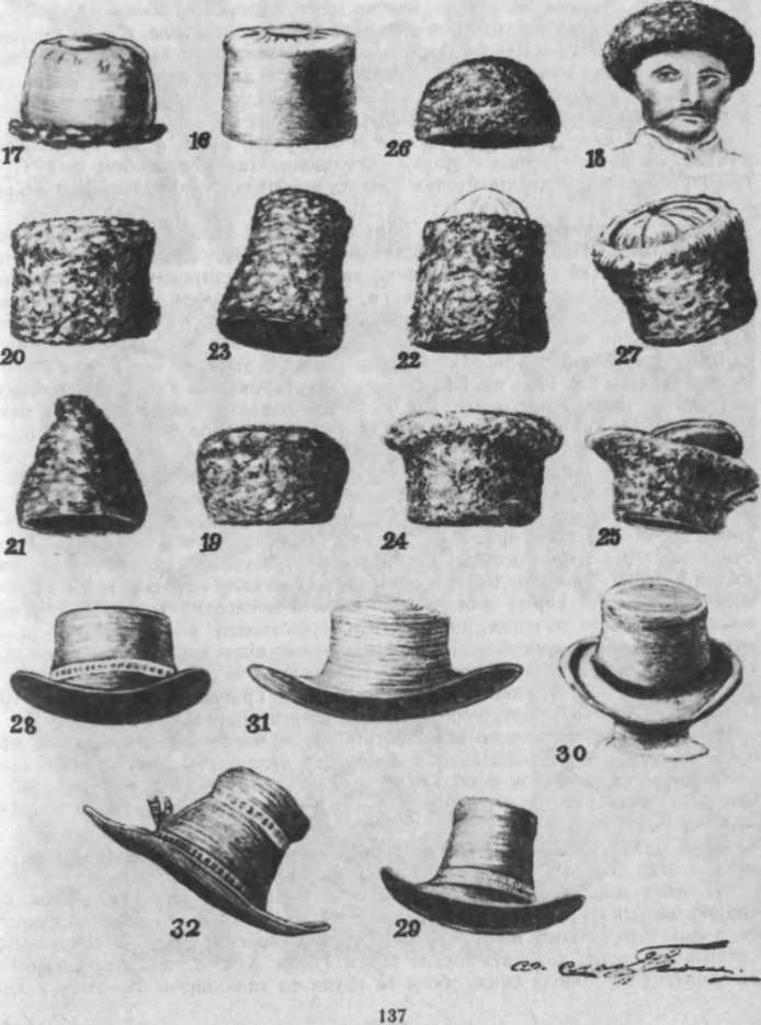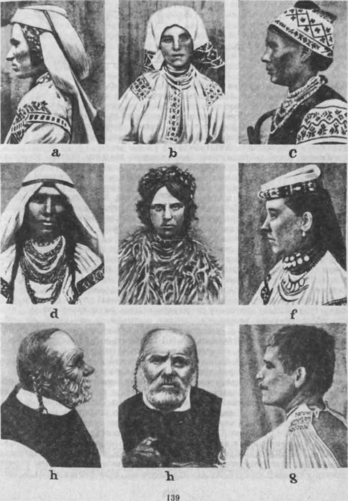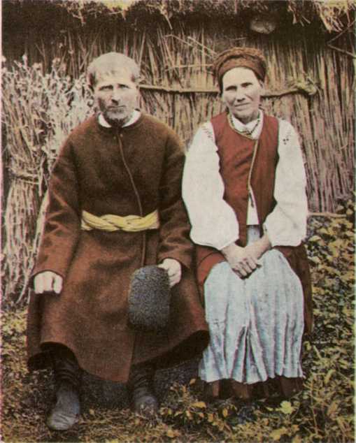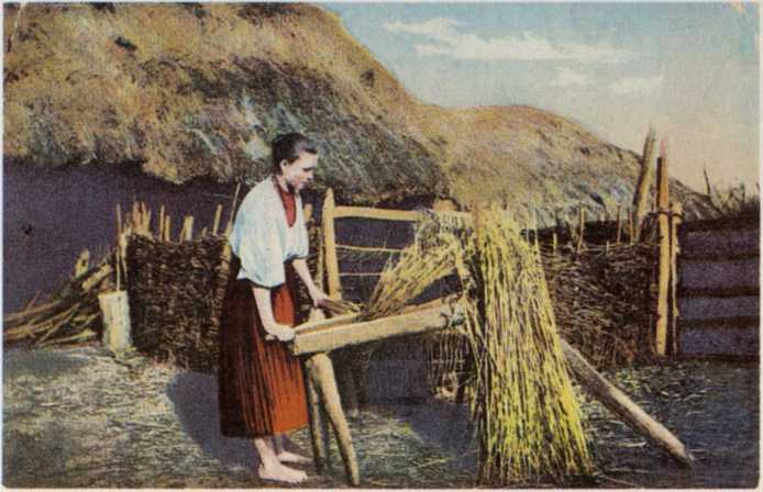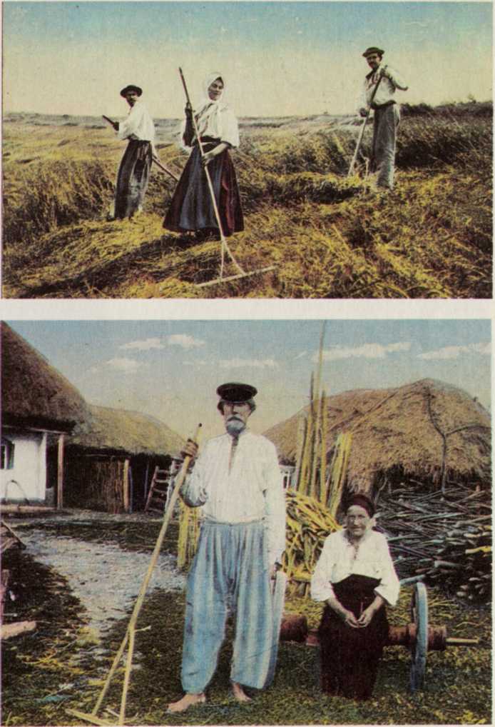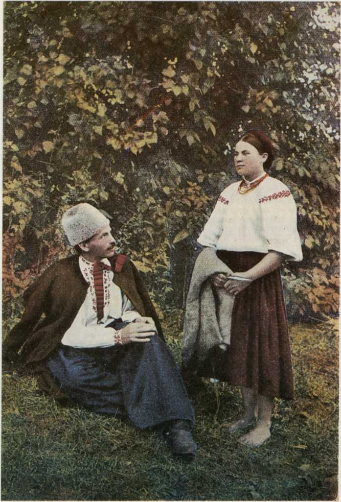 Инше біле головне вкриття, що зустрічається тільки в північній смузі України, являє собою, иа нашу думку, ріжні та більш-менш далекі відміни намітки. Українки Городенщини та деяких місцевостей північної Волині це головне вкриття з паютна носять майже зовсім таким самим способом, як і намітку, обмотуючи лице та спускаючи кінці на плечі й на спину (табл XIII, а); у бойків замісць намітки носять так звану піаку. Нівка — це досить великий чотирьохкутний шматок полотна чи бавовняної тканини; один його край нноді вишитий вузенькою смужкою. Иівку вдягають таким способом, щоб ця смужка прихопилась над лобом, а рештою півки обмотують голову в ріжних місцевостях ріжно. У Гіобуці, Бризі та инших селах, по течії Мізуні та Чачвк, до .Помниці півкою обмотують голову, або, краще сказати, тім’я, досить тісно, потім зав’язують її навколо голови вишитим краєм, а решта півки спадає на плечі та на спину і становить щось подібне до короткої та щільної фати (табл. ХНІ, d; табл. XVI11, в). В инших місцевостях півку чи рантух (Reintuch) сильно крохмалять та роблять з неї щось иа кшталт ореолу навколо голови, що дуже нагадує старовинне єгипетське головне вкриття. На півночі Волині та в північних частинах Київщини та Чернигівщини це біле вкриття доходить до розмірів невеликої хустки, часто затканої вузенькою червоною смужкою по краях або з досить широкими вибагливими вишивками по краях та по кутах (табл. XIII, b та с). Такими
