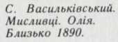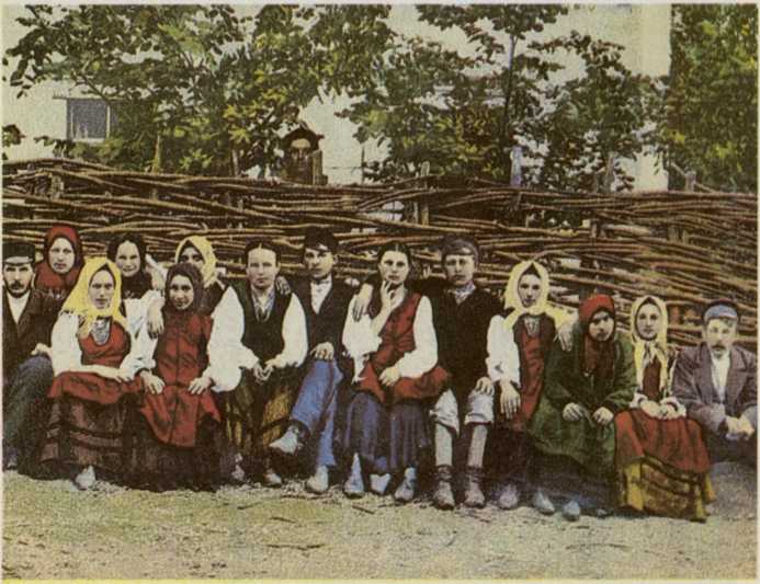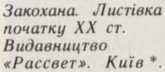Кольорові таблиці XIV—XVII празького видання через низьку поліграфічну якість опущено (pejtl-того самого крою, що й кептар, а у молодиць таку саму одежу, тільки довшу, з двома, а то й уже з трьома «вусиками» (табл. XIV, с), що утворились од вставлених клинців, так то можна сказати, кірсетка повстала на наших очах. На межі СгарокостянтинІвського та Заславського повітів на Волині під назвою «епенцера» носять лейбик без рукавів і без талії, хоч рукава иноді й трапляються На Чернигівщині, як повідомляє А. Г. Сластіои. і тепер ще носять білу сукняну безрукавку, що її звуть катанкою (зовсім так само, як і в Галичині). У Кролевецькому повіті ми бачили катанку вже з «вусиками», і, мабуть, тут нона втратила свою назву, бо ТІ звуть просто кірсеткою. У Дубнях на Полтавщині Гун, подорожній на початку XIX століття, бачив іще подібну одежу, але вже з рукавами. Отже, здається, тут ми знаходимо сліди поступового перетворення катанки в корсетку. Це перетворення повстало, мабуть, здебільшого одночасно з тим, як на місце сукна для цієї одежі прий-шли бавовняні тканини, а це на Великій Україні сталося в 20—30-х роках минулого століття Цим пояснюється повна відсутність корсетки як на малюнках Рігельмана, так і в описах одежі у Шафонського, Баитиша Камснсь-кого, Арандаренка, а також і в Голембіовськога та у Де ла Фліза. У всякім разі, корсетка — це частина жіночої одежі, порівнюючи з иншимн, новішого походження, і вона, як показу« все вищенаведене, найбільше розвинулась иа східній Україні, тнмчасом як на заході України в деяких місцевостях, як, наприклад, у Гилтському повіті на Поділлю та в цілій Галичині, корсетки зовсім немає. В західній частині України корсетки бувакль більше яскравих іа строкатих барв і значно коротші, ближчі до лейбика, а на сході вони — темніші та значно довші; на Чернигівшнні їх шиють з набойки з дрібними квіточками на чорному чи синьому тлі, на Полтавщині вони майже скрізь однобарвні, темних відтінків, а крім того, довші, ніж деинде на Україні (табл. XIV, е). На Харківщині та Вороніжчині корсетки шиють коротші, Із строкатих тканин, бавовняної парчі тощо та довільно оздоблюють їх оксамитовими нашивками, гудзиками тощо (табл. XV, д). Застьобують корсетки звичайно на лівому боці, але часом, як. наприклад, в Уманському повіті, посеред грудей, на гапликах.