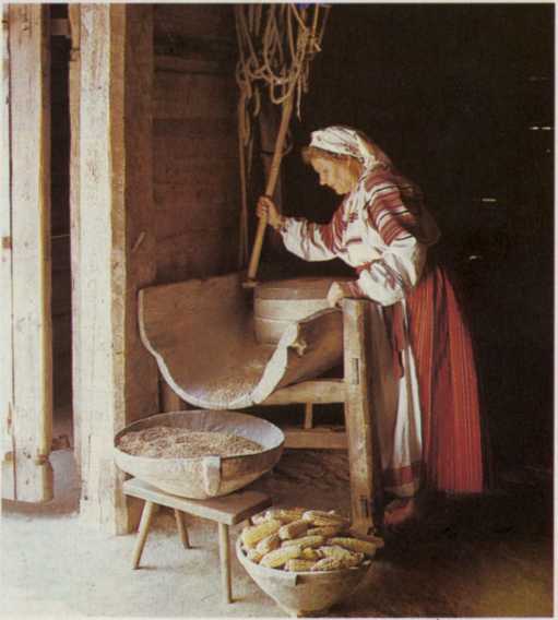 5) Одежа, що Її носять безпосередньо на тілі (білизна). Сорочка, чи кошуля. Питання про те, до якої міри можна у нас вважати за старовинну цю частину одежі (назву її виводять од латинських слів sarca та casula), досить тяжко розв'язати. У римлян льняна tunica interior sive interula ввійшла до вжитку тільки за імператорів, і під назвами, похідними од casula, траплялася досить рідко в Західній Європі навіть за середньовіччя Щодо України, то. як ми це вже зазначали, сорочка (від старовинного слав'янського слова рубъ в українській мові переховалось тільки слово руб'я цебто лахміття), безперечно, були в ужитку вже за князівської доби, а крім того, знахідки дуже численних пряслиць та решток, правда не дуже точно означених, льняних чи конопляних волокон у пізніших могилах дають право думати, що сорочки були в ужитку ще й раніше. Будь що будь, існування сорочки як частини української одежі вже на початках історичних часів можна вважати за доведене. За козацьких часів, судячи по кількох перехованих екземплярах та по малюнках Рігельмана, принаймні иа Лівобережжі, жіночі сорочки мали той самий крон, як і сучасні в тих самих місцевостях, цебто вони були без коміра, тільки з вузькою лямівкою по краю зібраного на нитку иилотна, з досить великим викотом, з вишитими рукавами і подолом.