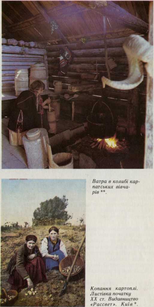 Дуже характеристичну особливість українських жіночих сорочок становлять вишивки. Вишивками оздоблюють найбільше верхні частини рукавів, їх оторочку коло запястя, комір, коли він єсть, та нижній край сорочки — подач, що його вишиту частину звуть лиштвою. Инших частин української жіночої сорочки ніколи не вишивають, з дуже рідкими винятками, як, наприклад, той, що довелося нам бачити на Волині, де сорочка була вишита зористим візерунком на грудях. Найбільше праці та мистецтва докладають до вишивки верхнього краю рукава, так званого полика, цебто більш-менш широкої (від 10 до 15, а часом і більше сантиметрів завширшки) смуги впоперек рукава, трохи нижче плеча, а також І підполиччя, вужчої (3—5 сантиметрів) смужки, нижче полика. Оторочки рукавів коло зап'ястя завше роблять дуже вузькі, так само як і візерунок на комірі, коли комір є, зате лиштва являє собою ииоді дуже широку смугу вишивки, шо доходить часом до 10 см завширшки. Вишивки ЦІ дуже ріжні як способом вишивання, так і матеріялом, малюнком та барвою; а крім того, І щодо свого географічного поширення. Способи вишивання зводяться загалом до трьох: І) вирізування або мережка, 2) настилування або вишивання гладдю і 3) хрещиками Перший з цих способів одзначаеться особливим мистецтвом І дуже тяжкий, бо при ньому ииткн витягають, роблять прорізи, і візерунок СТ8€ наскрізний, на кшталт мережива. Другим способом вишивають або білими нитками по сировому полотні, або навпаки, а то ще кольоровими бавовняними нитками (заполоччю), вовною, шовком та метальовими нитками За наших часів вишивки білими нитками Існують ще подекуди на Чернигівщині та місцями на Полтавщині, иа Київщині й на Поділлю; вовною вишивають у Галичині, особливо у гуцулів; шовком — найчастіше на Буковині Шовком вишивають і в тих дуже рідких випадках, кати хотять відтворити старовинні візерунки козацьких часів, бо ж за козацької доби настилування шовком було дуже поширене; його застосовували не тільки до вишивання жіночих та чоловічих сорочок, але й простнрадел, скатірок тощо, церковних річей (поручів, воэд?хів, підризників та нн>. Нарешті, третій спосіб -- хрещиками, найбільше поширений тепер, полягає в тому, що вишивають хрестиками по канві, яку утворюють нитки більш-менш грубого полотна, вживають для вишивання тільки заполоч, цебто бавовняні ннткн синьої або червоної барви Щодо малюнка, то в орнаменті українських вишивок взагалі, як у всіх південних та західніх слав'ян. переважають мотиви рослинні, починаючи з нехитрої північно-української «сосонки», «хмелю» тощо до чудово вишитих шовком гвоздик, більш-менш стилізованих квітів хмелю, дубових листків, троянд і навіть лотоса на старовинних візерунках підризників. Чисто геометричні форми, занесені переважно з півночі, трапляються дуже рідко, і то найбільше у вишивках хрестиками, причому значну ролю грають варіяції грецького хреста тощо. Але єсть дуже багато візерунків, по суті зовсім не геометричних, а чисто рослинних, що набрали геометричного характеру з причини сильної стилізації, як, наприклад, хвилясті лінії «хмеликів» перетворились у лінії ламані; рожа стала геометричною зіркою тощо Нарешті, і малюнки тварин та архітектурні мотиви майже зовсім не трапляються, а коли й трапляються, то найбільше тільки у вигляді назв: метелики, рачки, павучки, собаки, півники тощо; візерунки 