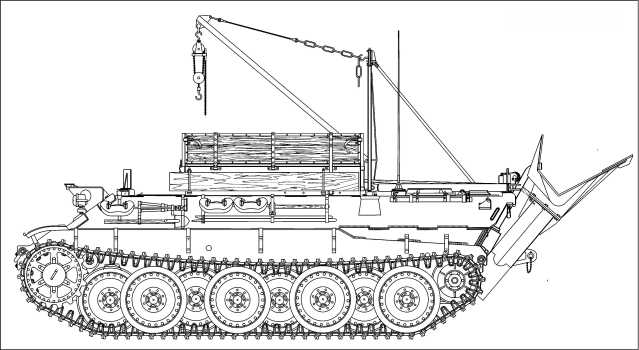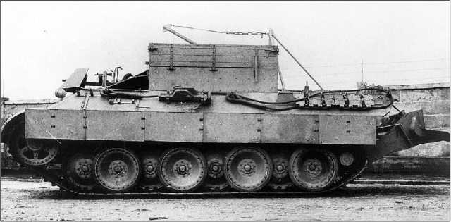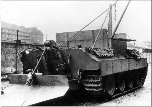 «Конструктивные изменения танка «Пантера», вызванные установкой лебедки и стрелы — незначительны и направлены в сторону упрощения общей конструкции танка. Тяговые усилия лебедки — 40–45 тонн (по тросу) в сочетании с возможностью устройства полиспаста (наличие пары роликов и длинный трос) обеспечивает эвакуацию аварийных и застрявших тяжелых и средних танков из любых противотанковых рвов, применяемых при современной обороне, а также из болот, рек и т. п.