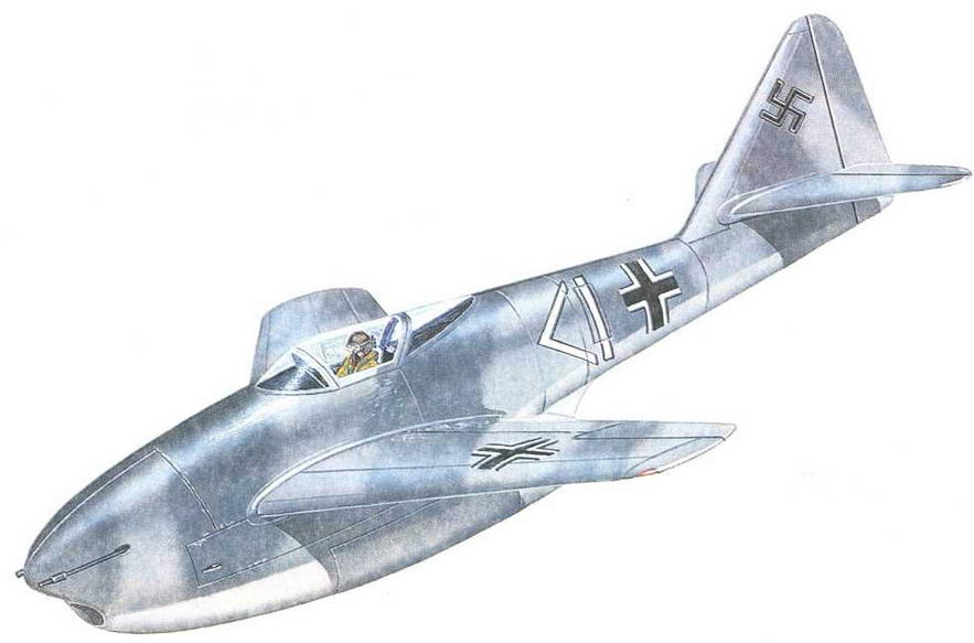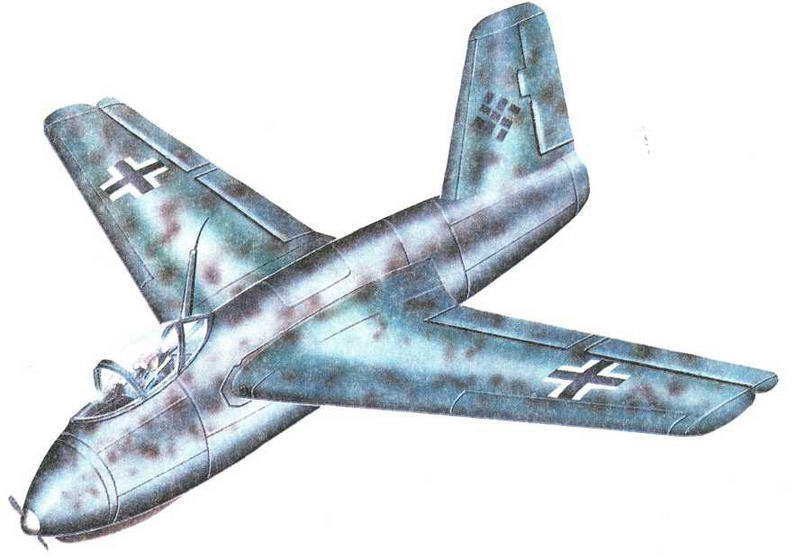 Другой возможностью снижения сопротивления истребителя в полете с высокими скоростями был эффект стреловидного крыла, открытый Буземаном в 1935 г. К началу 40-х годов в немецкой авиационной промышленности уже имелись первые практические результаты исследований стреловидного крыла. В апреле 1941 года у Мессершмитта появился замысел оборудовать Me 262, в то время впервые взлетевший с поршневым двигателем, крылом со стреловидностью 35°.