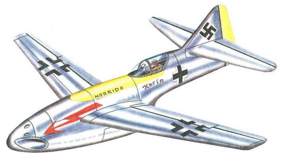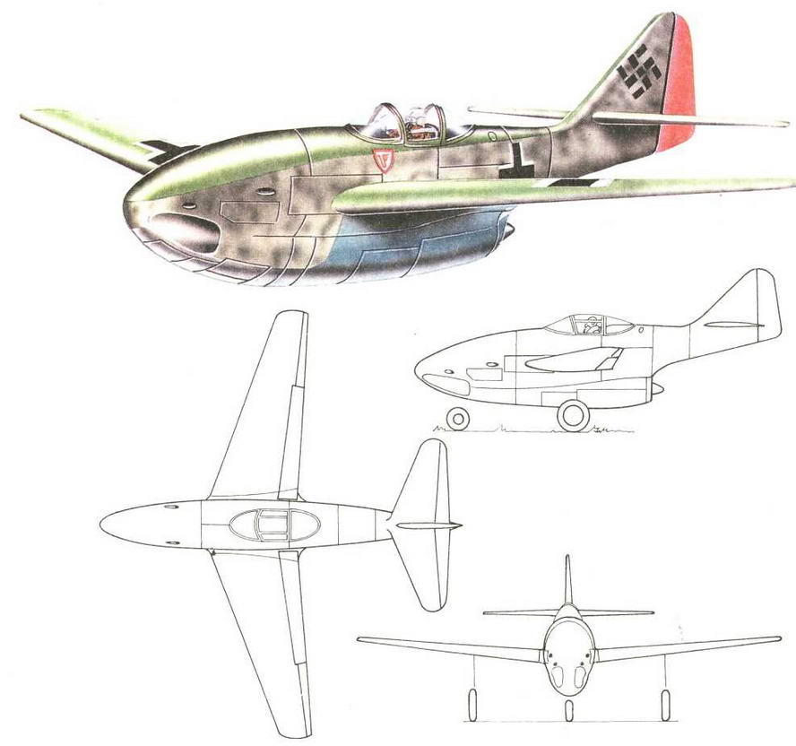 С этим самолетом и проектами Р1101, Р1110, Pll.ll и Р1112 южногерманское предприятие Мессершмитта выдвинулось в 1945 г. на самые передовые позиции в мировом самолетостроении. Данные работы существенно повлияли на развитие авиационной техники после войны.