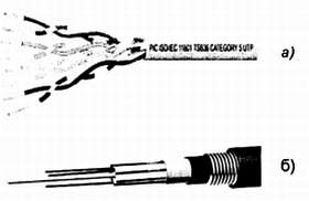 В отдельный кабель, как правило, заключают несколько витых пар, имеющих цветовую маркировку (рис. 32, а).