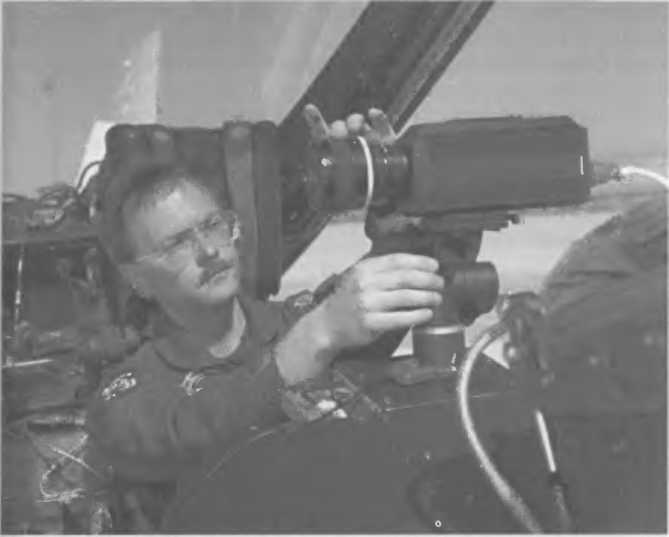 Рис. 4.32. Дэниэл Дурда устанавливает в кабине самолета видеокамеру.